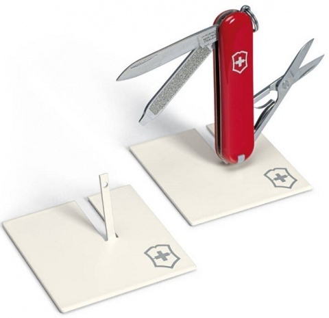 Незаменимый аксессуар для коллекционеров ножей Victorinox. Компактная металлическая подставка с логотипом Victorinox, вставляется в отверстие для пинцета или зубочистки.