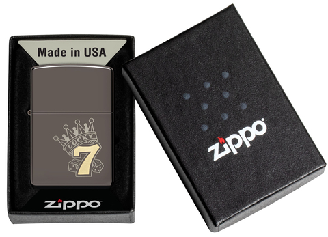 Воспользуйтесь этой зажигалкой с покрытием Black Ice®, чтобы усилить удачу, куда бы вы ни пошли. Благодаря двухцветной лазерной гравировке мы изобразили счастливую цифру 7 в короне и с парой игральных костей в роскошных латунных и хромированных тонах.