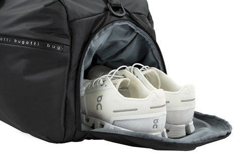 СПОРТИВНАЯ СУМКА BLANC Рады представить вам нашу новую серию универсальных и чрезвычайно стильных сумок и рюкзаков Blanc. В этой линейке наши дизайнеры добились идеального сочетания дизайна, функциональности и пригодности для повседневного использования. В качестве основного материала используется тарпаулин - очень лёгкая ткань с водоотталкивающими свойствами. Скрытые молнии с логотипом Bugatti не только защищают от проникновения влаги, но и дополняют стильный дизайн коллекции. С сумками Blanc будьте готовы быть в центре внимания! СВОЙСТВА Внутренняя организация: основное отделение на молнии с карманом на молнии и 2 карманами без застёжек Внешняя организация: передний карман на молнии, ремень для соединения с телескопической ручкой чемодана, боковой карман на молнии для обуви, съёмный регулируемый плечевой ремень (до 130 см) Размер: 52 x 26 x 27,5 см Вес: 0,65 кг Материал: тарпаулин / полиэстер