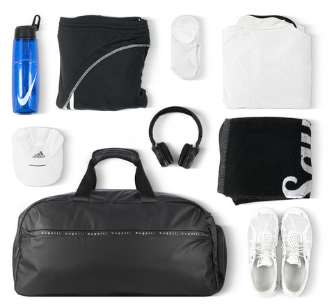 Сумка спортивная BUGATTI Blanc, чёрная, тарпаулин/полиэстер, 52х26х27,5 см (49660301)