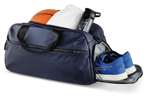 СПОРТИВНАЯ СУМКА BLANC Рады представить вам нашу новую серию универсальных и чрезвычайно стильных сумок и рюкзаков Blanc. В этой линейке наши дизайнеры добились идеального сочетания дизайна, функциональности и пригодности для повседневного использования. В качестве основного материала используется тарпаулин - очень лёгкая ткань с водоотталкивающими свойствами. Скрытые молнии с логотипом Bugatti не только защищают от проникновения влаги, но и дополняют стильный дизайн коллекции. С сумками Blanc будьте готовы быть в центре внимания! СВОЙСТВА Внутренняя организация: основное отделение на молнии с карманом на молнии и 2 карманами Внешняя организация: передний карман на молнии, ремень для соединения с телескопической ручкой чемодана, боковой карман на молнии для обуви, съёмный регулируемый плечевой ремень (до 130 см) Размер: 52 x 26 x 27,5 см Вес: 0,65 кг Материал: тарпаулин / полиэстер