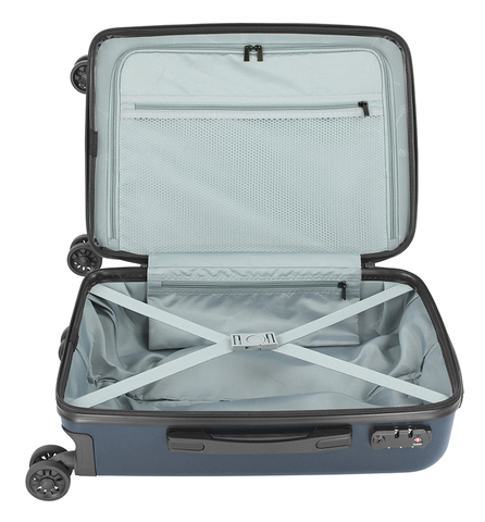ЧЕМОДАН KALLISTO Серия Kallisto воплощает собой нашу страсть к путешествиям. Тонкие диагональные полосы и стильная поверхность с металлическим оттенком подчёркивают непринужденную привлекательность коллекции, представленной в чёрном и тёмно-синем цветах. Логотип Bugatti аккуратно встроен в металлический шильдик на корпусе. Четыре двойных резиновых колеса просты в управлении и очень удобны. Они могут вращаться на 360°, обеспечивая лёгкий ход по любой поверхности при сохранении полной манёвренности. Лёгкая выдвижная телескопическая ручка удобно фиксируется в нескольких положениях. Замок TSA с трехзначным кодом надёжно защищает содержимое багажа от несанкционированного доступа, а дополнительная ручка на дне корпуса облегчает загрузку и выгрузку чемодана. Продуманная концепция больших отделений с внутренней перегородкой на молнии позволяет максимально практично использовать внутреннее пространство. СВОЙСТВА Внутренняя организация: основное отделение на молнии с 2 отсеками, сетчатой перегородкой с карманом на молнии, карманом на молнии и 2 фиксирующими ремнями Внешняя организация: телескопическая ручка, кодовый замок TSA, 4 двойных колеса, боковая ручка, ручка на дне Размер: 35,5 x 23 x 53,5 см Объём: 40,25 л Вес: 2,70 кг Материал: АБС-пластик