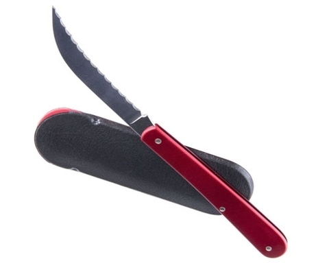 Нож пекаря. 90 мм. в сложенном виде. Алюминиевая рукоять. Изогнутое серрейторное лезвие.