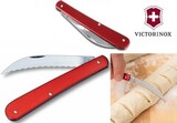 Оригинальный карманный нож Victorinox BAKER'S KNIFE швейцарского производства длиной 90 мм (в сложенном виде). Уникальный дизайн с невероятно прочными алюминиевыми накладками красного цвета и изогнутым серрейторным лезвием. Этот компактный и элегантный складной нож разработан для пекарей и кондитеров. Идеально подходит для надрезания теста, так как форма повторяет изогнутую поверхность хлеба. Это создает красиво расширяющиеся складки после выпечки хлеба. Он хорошо сделан и достаточно компактный, чтобы поместиться в вашем кармане или фартуке. Даже если вы используете нож каждый день, лезвие остается острым и качественно выполняет свою работу. Высококачественное сочетание материалов, дизайна и профессиональной сборки. Лезвие, изготовленное из высокоуглеродистой нержавеющей стали, устойчиво к коррозии и затуплению.