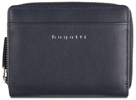 Кошелёк женский BUGATTI Lady Top, на молнии, тёмно-синий, натуральная воловья кожа, 12х2,5х9 см (49610505)