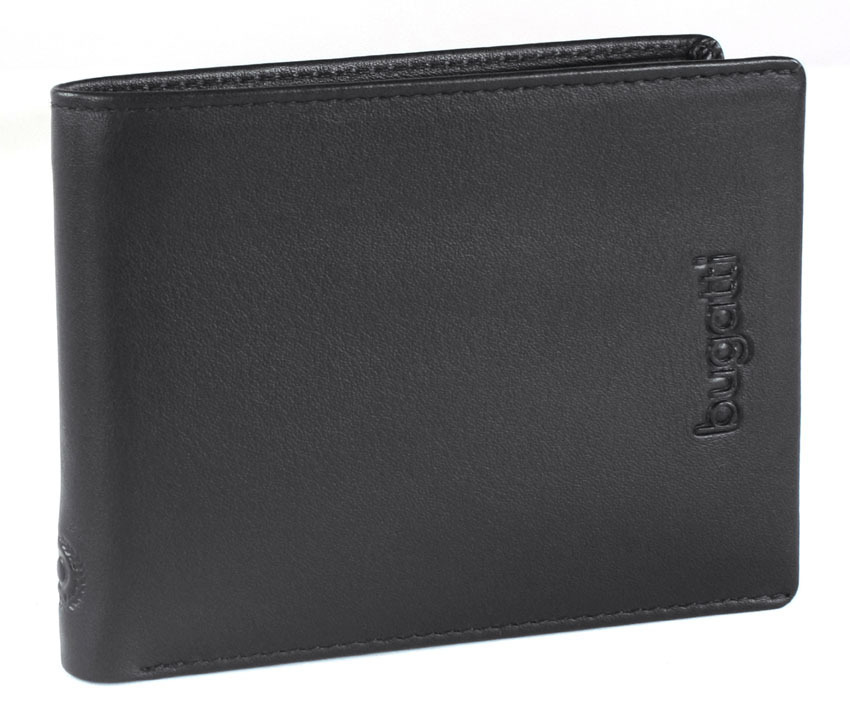 Портмоне BUGATTI Vertice, чёрное, натуральная воловья кожа, 10,5х1,5х8,5 см (49318301)