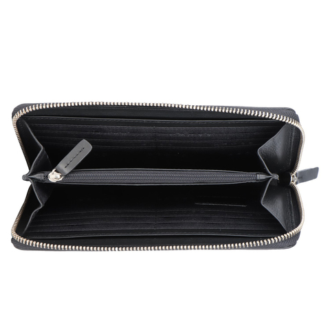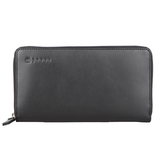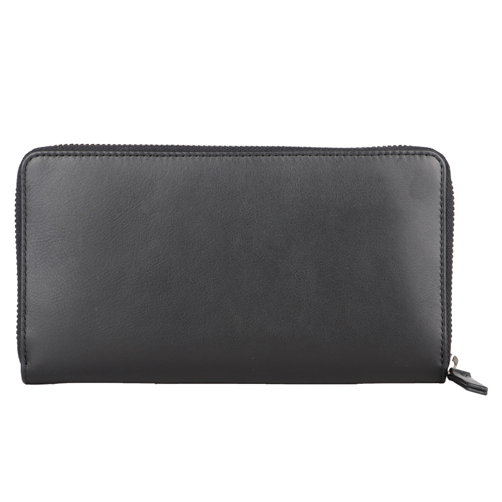 Кошелек закрывается на молнию, включает в себя: одно отделение на молнии, два отделения для купюр, два универсальных отделения, шестнадцать отделений для кредитных карт.