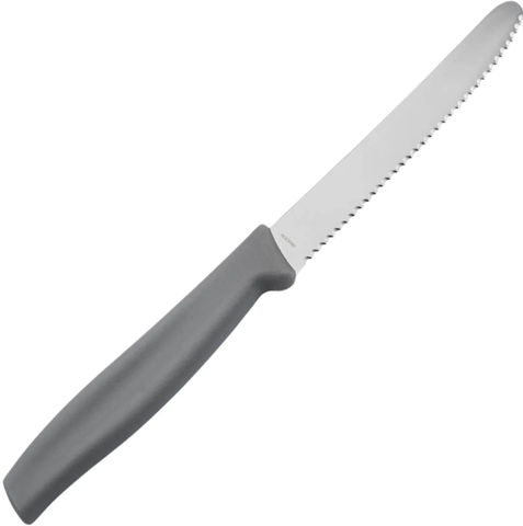 Лезвие ножа изготовлено из высококачественной нержавеющей стали, подходит для широкого спектра точных кулинарных задач и обеспечивает идеальную нарезку. Лёгкая эргономичная рукоять изготовлена из ударопрочного нескользящего пластика, обеспечивает максимальный комфорт и контроль. Заводская серрейторная заточка сохраняет остроту долгие годы.
