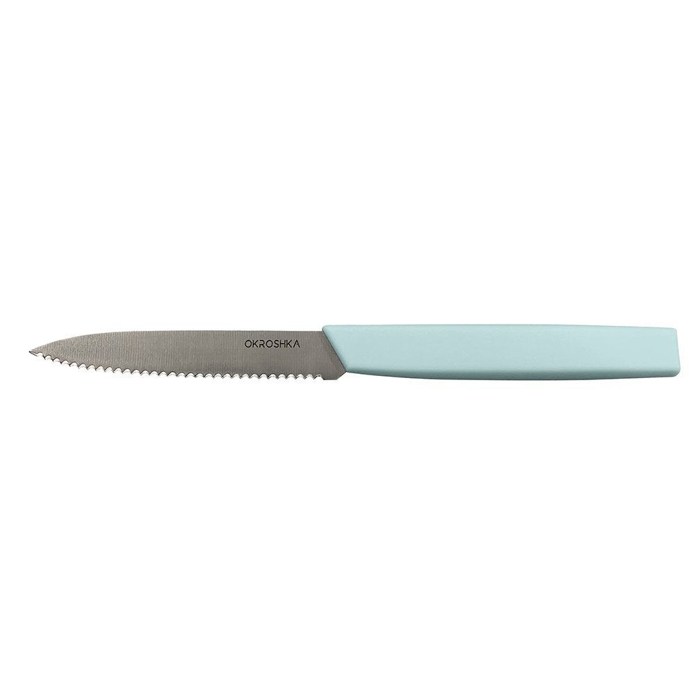 Нож для фруктов и овощей OKROSHKA Salad, лезвие 10 см, с серрейторной заточкой, голубая ручка OK225P-BL-FRS