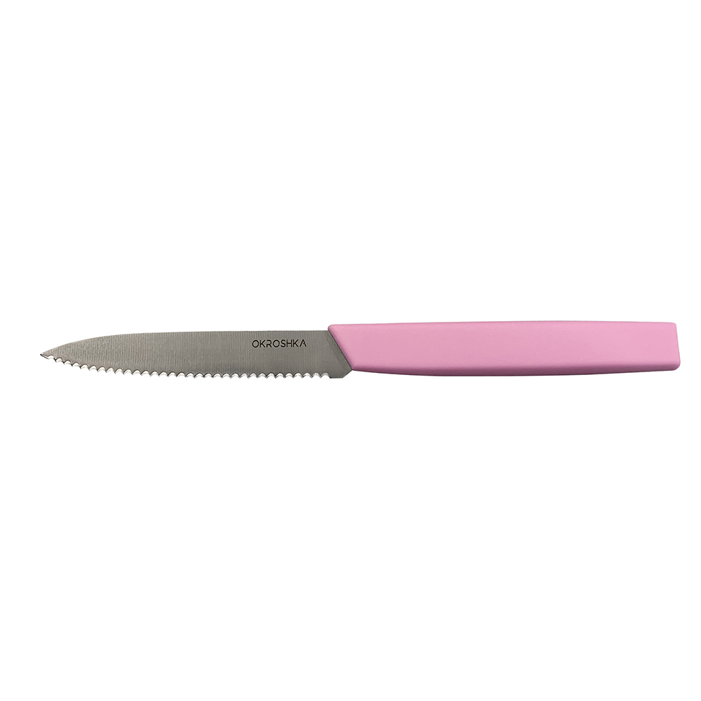 Нож для фруктов и овощей OKROSHKA Salad, лезвие 10 см, с серрейторной заточкой, розовая ручка OK225P-PN-FRS
