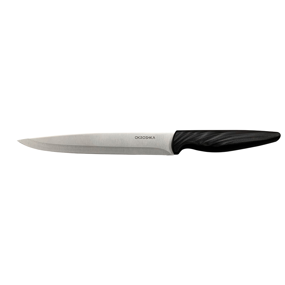 Нож филейный OKROSHKA Crouton - идеален для тонкой нарезки и отделения филе. Длина лезвия: 19,8 см Серия Crouton (Крутон) — это простые и удобные ножи на каждый день, созданные для практичной и комфортной готовки. Надежные материалы, простой уход и комфортное использование — все, что нужно под рукой. Лезвия выполнены из высококачественной нержавеющей стали 5Cr15MoV, которая обеспечивает долговечность и сохраняет остроту даже при активном использовании. Эргономичные ручки гарантируют удобный захват и безопасность. Crouton объединяет простоту и надежность, превращая каждое приготовление в легкий и приятный процесс.