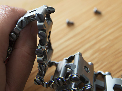 Браслет Leatherman Tread включает в себя 29 опций, в числе которых множество ключей и отверток различных размеров, открывалка и даже режущий крюк. Размер браслета регулируется путем установки или снятия звеньев.