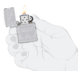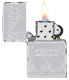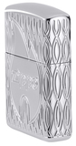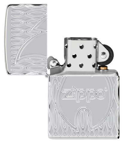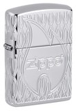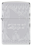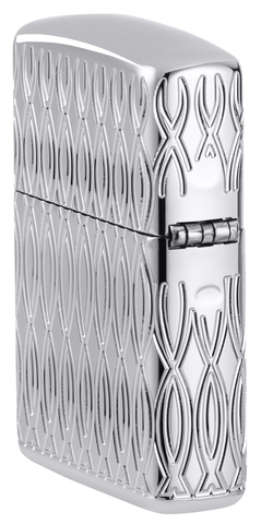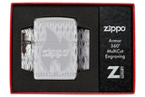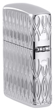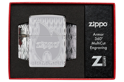 Классический логотип Zippo и значок пламени украшают поверхность этой изысканной зажигалки Armor® м покрытием High Polish Chrome, окруженной со всех сторон текстурированным геометрическим узором, выполненном в роскошной технике многогранной гравировки.