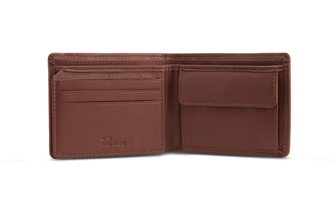 с RFID защитой, натуральная кожа, 10,5 х 2 х 8,5 см. 6 отделений для карт, 2 отделения для купюр, отделение для монет, сетчатый карман, дополнительные карманы