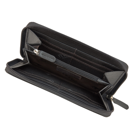 с RFID защитой, натуральная кожа в черном цвете, 19 х 2 х 10,5 см. 12 отделений для карт, 2 отделения для купюр, отделение для монет, дополнительные карманы