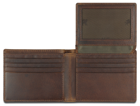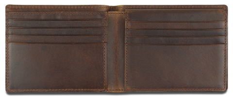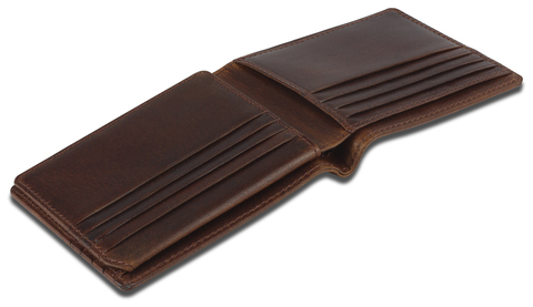 Портмоне изготовлено вручную из натуральной кожи буйвола, обеспечивает безопасное хранение купюр и кредитных карт.
