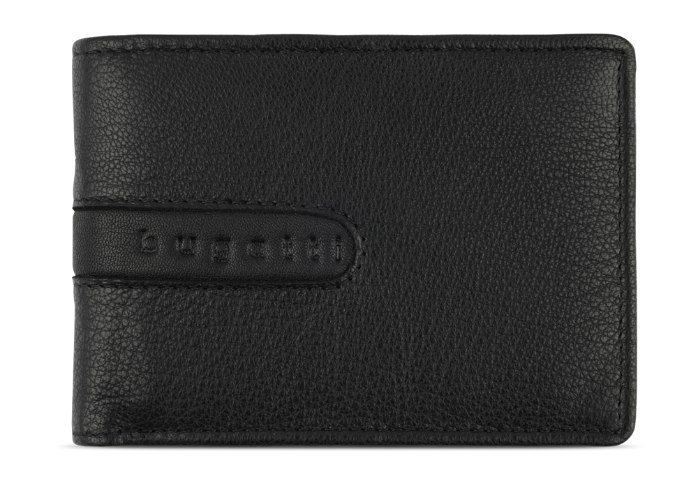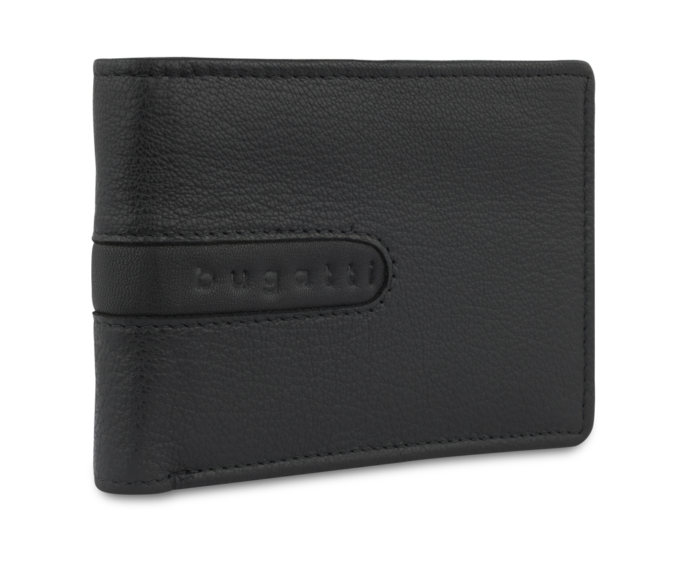 Портмоне BUGATTI Bomba, с защитой данных RFID, чёрное, кожа козы/полиэстер, 12,5х2х9 см (49135201)