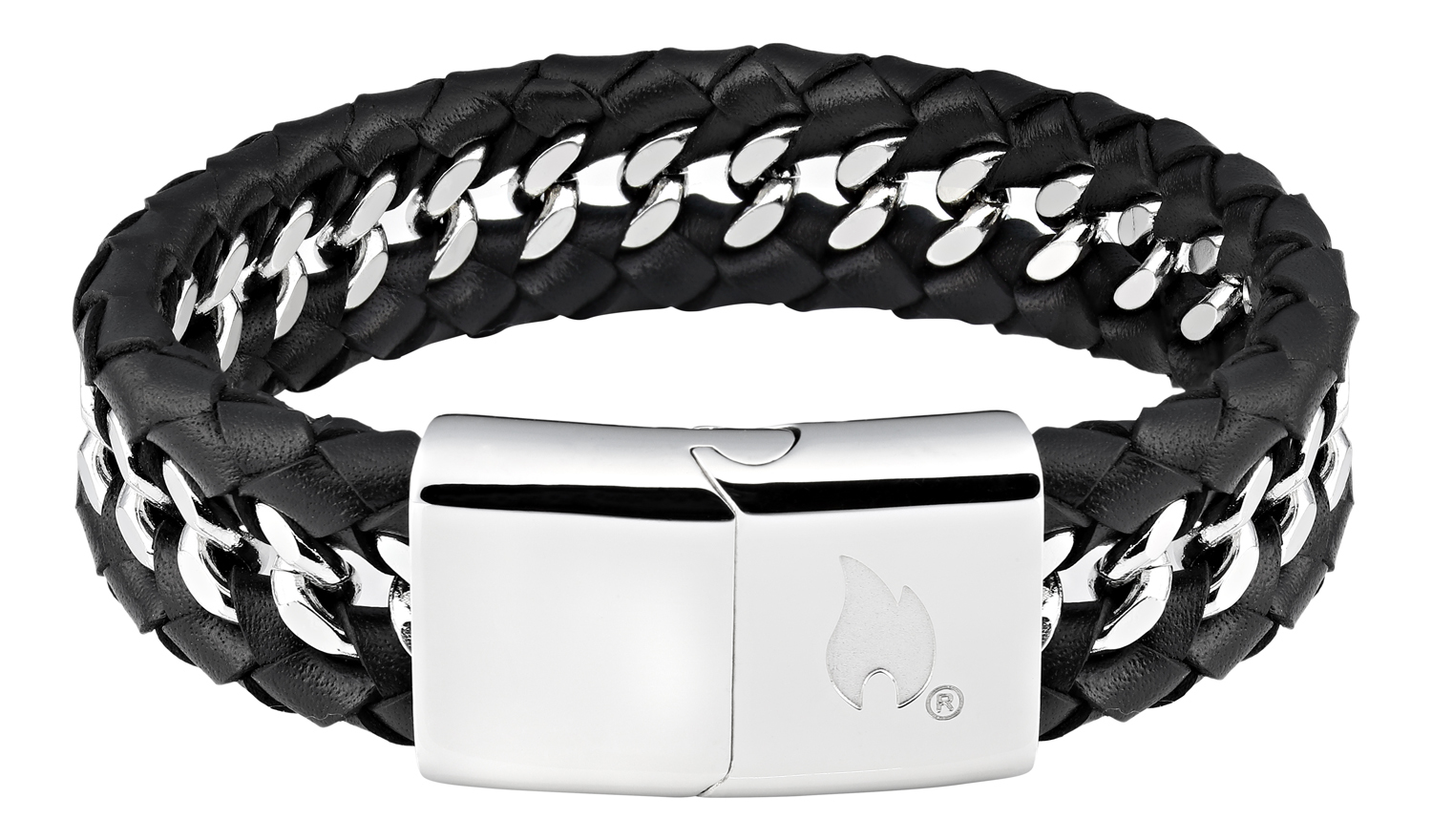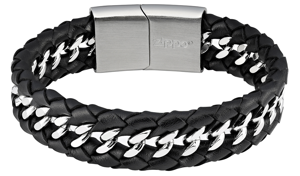 Браслет ZIPPO, чёрный, нержавеющая сталь/натуральная кожа, 22x1,80x0,70 см