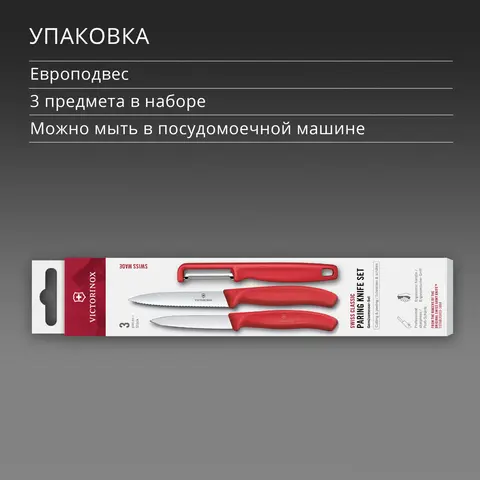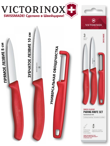Кухонный набор VICTORINOX Swiss Classic Paring Knife Set with I-Peeler, 2 ножа и овощечистка (6.7111.33C1) цвет красный chili red