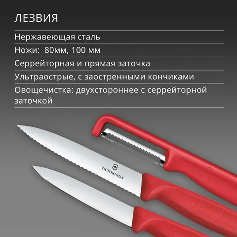 Этот набор Victorinox Swiss Classic Paring Knife Set with I-Peeler представлен в разных цветовых вариантах: