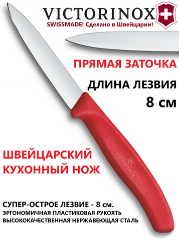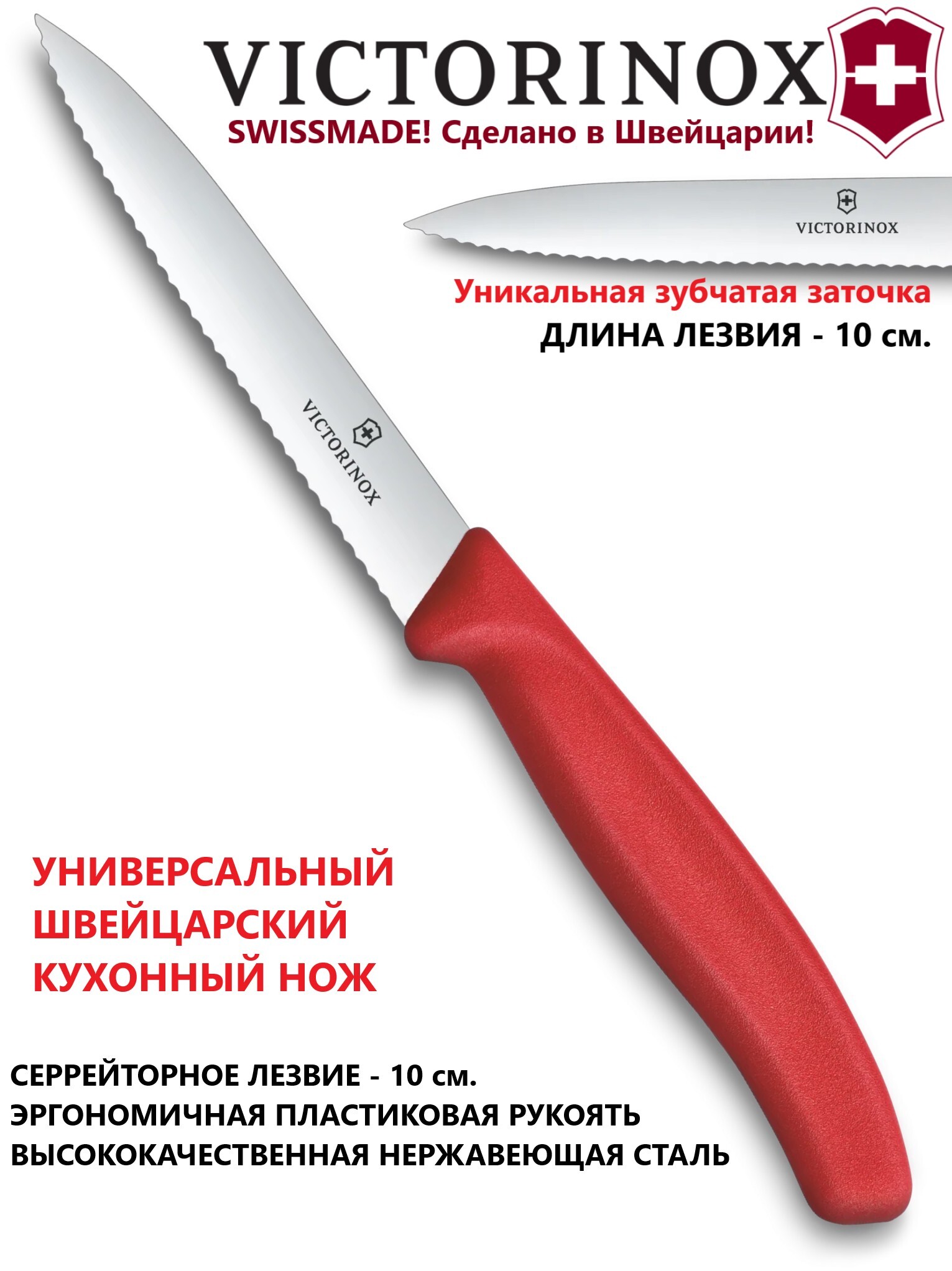 Универсальные швейцарские кухонные ножи Victorinox с 8-11-сантиметровым лезвием идеально подходят для резки и чистки овощей и фруктов, а также нарезки сосисок, колбас, стейков, небольших кусков мяса и кондитерских изделий.