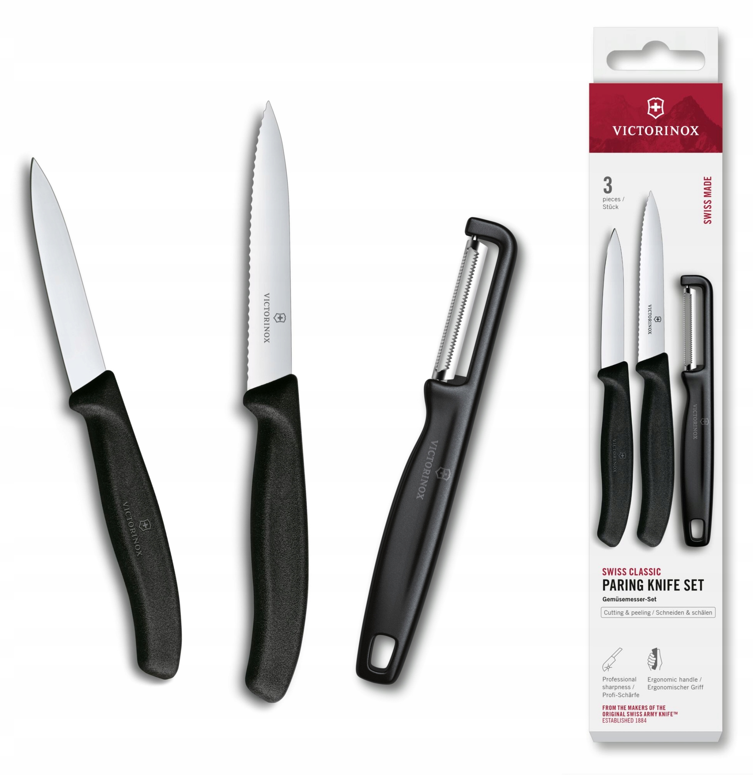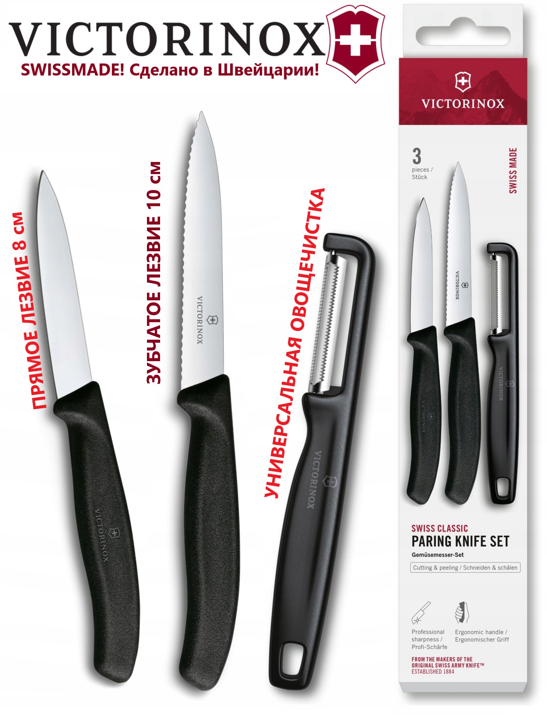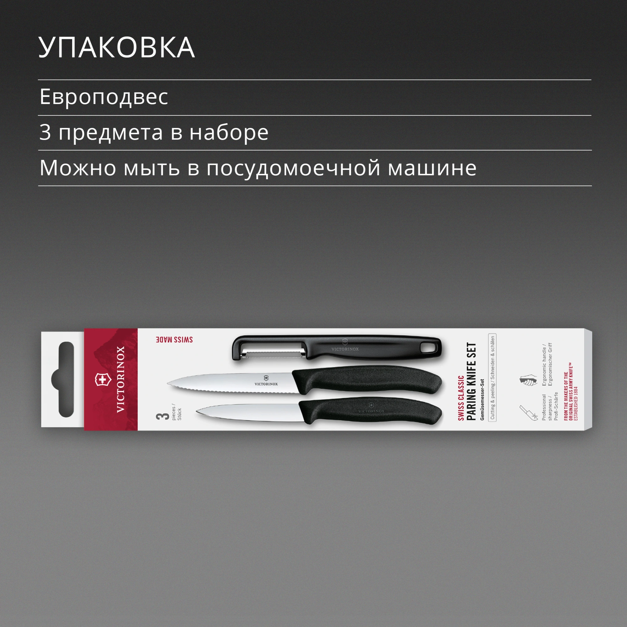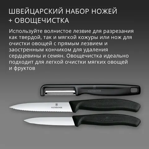 Кухонный набор VICTORINOX Swiss Classic Paring Knife Set with I-Peeler, 2 ножа и овощечистка (6.7113.33) цвет чёрный