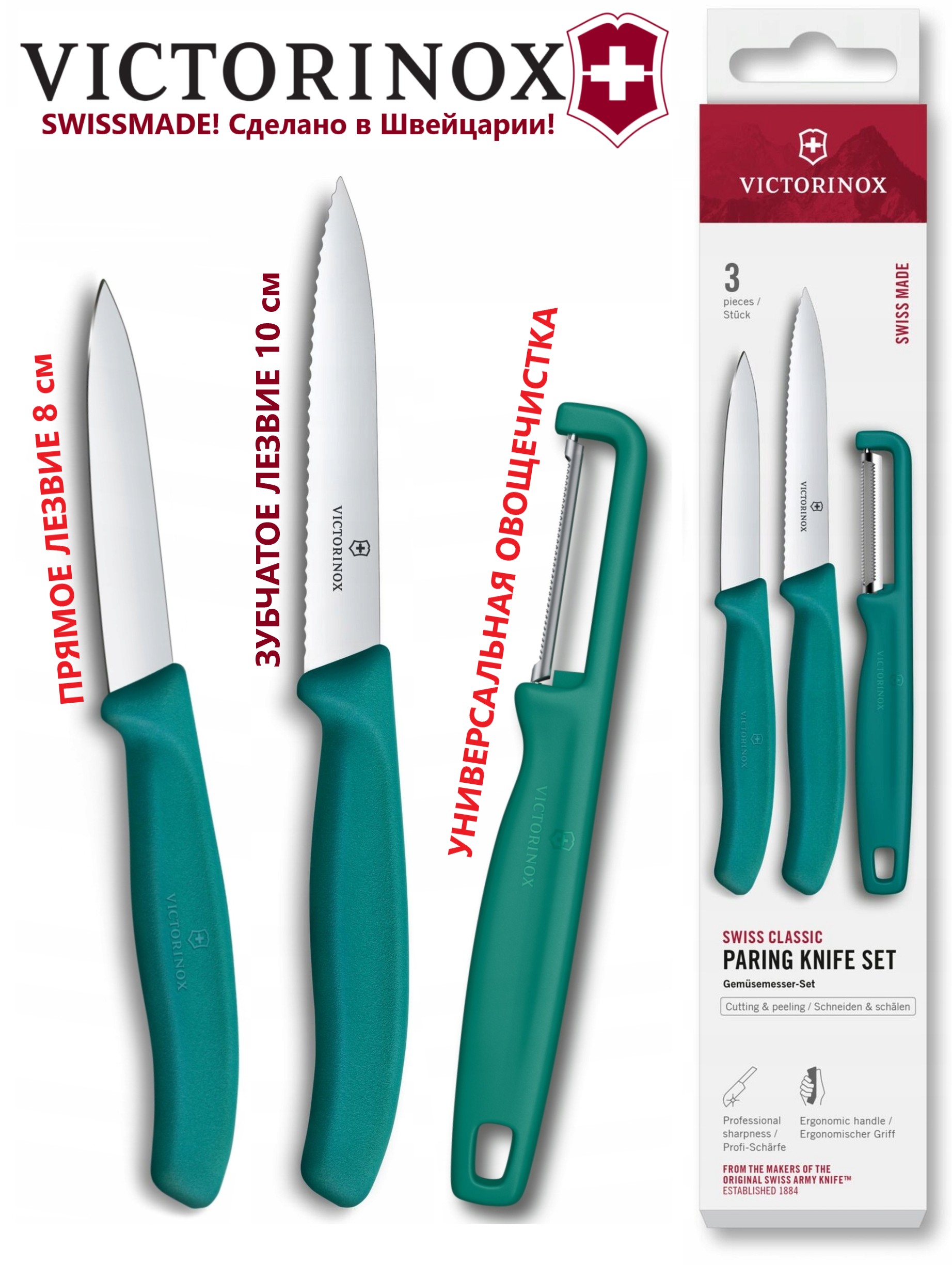 Этот набор Victorinox Swiss Classic Paring Knife Set with I-Peeler представлен в разных цветовых вариантах: