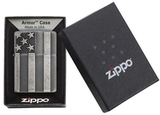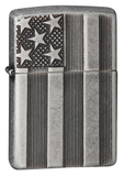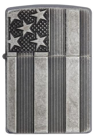 Прочный корпус этой зажигалки с поверхностью Antique Silver Plate™ украшает выполненный методом чеканной гравировки дизайн в стиле американского флага. Результатом этой уникальной комбинации являются красивый дизайн и интересная структура.