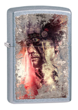 Зажигалка Street Chrome™ с цветным изображением коренного американца в детально выписанном головном уборе на фоне шероховатой текстуры в винтажном стиле. Поставляется в коробке, созданной из экологически чистых материалов. Для оптимальной работы рекомендуем использовать оригинальное высококачественное топливо Zippo.