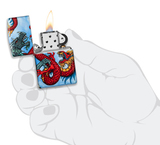 В средневековье драконы правили всем происходящем на суше и в небе. Станьте свидетелем эпической битвы за превосходство с участием пары ящеров, изображенных с помощью нового техпроцесса Zippo 540 Color. Этот техпроцесс позволяет покрывать абсолютно всю поверхность зажигалки детально прорисованными художественными изображениями. Поставляется в подарочной коробке. Для оптимальной работы рекомендуется использовать только оригинальное топливо Zippo. ОСОБЕННОСТИ: • Настоящая ветроустойчивая зажигалка Zippo с характерным фирменным "щелчком" • Полностью металлическая конструкция и абсолютная ветроустойчивость • Возможность заправки позволяет пользоваться зажигалкой всю жизнь • Для оптимальной работы рекомендуется использовать оригинальные кремни, фитили и высококачественное топливо Zippo • Сделано в США; пожизненная гарантия "Она работает или мы починим её бесплатно™ • Топливо: высококачественное топливо Zippo (продаётся отдельно)