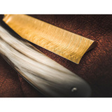 Damasteel. Позолота. Натуральный рог. Общая длина - 232 мм. Длина клинка - 77 мм.