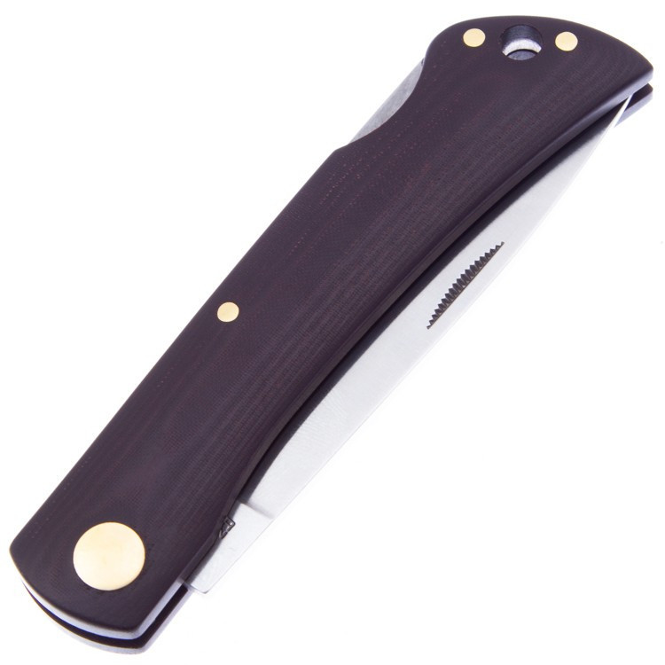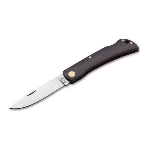 Нож Boker Rangebuster — это традиционный карманный нож, который был разработан в США для использования в сфере сельского хозяйства еще в 18 веке. Это легкая и относительно простая модель, которая снабжена надежным замком Back-Lock. Сатинированный клинок в форме Drop-Point изготовлен из стали N690. Материал рукояти - микарта, декоративные заклепки изготовлены из латуни. Нож изготовлен на фабрике ножей Boker в Золингене.