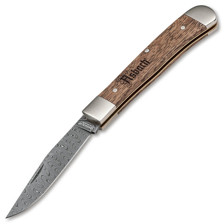 Лимитированная версия складного ножа Trapper Asbach Uralt, с клинком из дамаска и дубовой рукояткой. Этот классический карманный нож сочетает в себе традиции и современность. Нож Asbach Uralt имеет привлекательную рукоять, сделанную из древесины бочкового дуба, в котором выдерживался знаменитый немецкий бренди Asbach Uralt. Оборудован никелированными больстерами.
