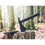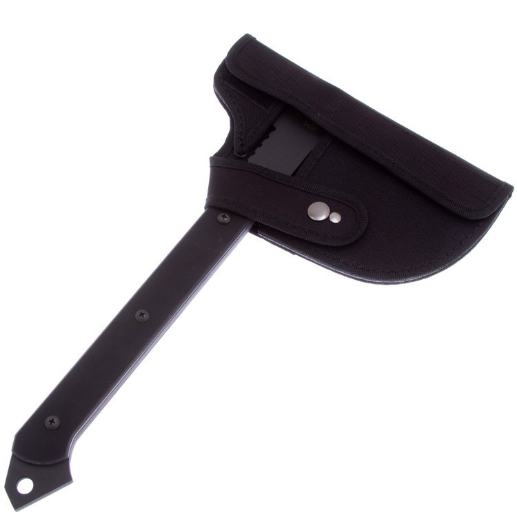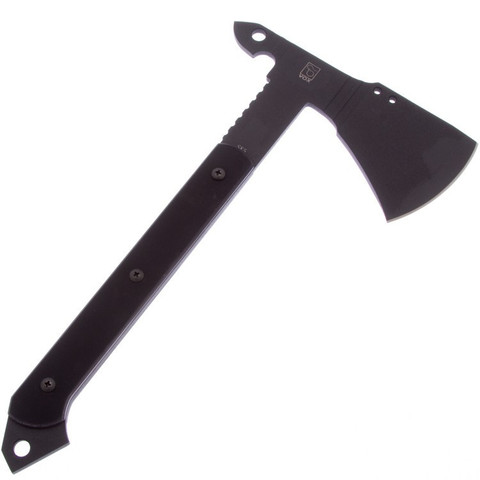 Топор имеет высокопрочную конструкцию и изготовлен из цельного куска углеродистой стали SK5 толщиной 6,2 мм. Сталь оптимально подходит для изготовления топоров, так как обладает высокой прочностью и отлично выдерживает ударные нагрузки. Кроме того, режущая кромка длительное время сохраняет свою остроту. Износостойкое порошковое покрытие черного цвета надежно защищает поверхность от коррозии.