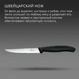 Нож подходит для широкого спектра точных кулинарных задач и обеспечивает идеальную нарезку. Лёгкая эргономичная рукоять изготовлена из ударопрочного нескользящего пластика, обеспечивает максимальный комфорт и контроль.