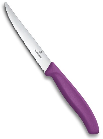 Отличный универсальный нож для кухни. Эргономичная пластиковая рукоять, лезвие 11 см из высококачественной нержавеющей стали, волнообразная (серрейторная) заточка, острый кончик. Идеально подходит для нарезки стейка, колбасы, сосисок, пиццы, небольших кусков мяса, овощей и фруктов. Благодаря уникальной серрейторной заточке, сверхострое лезвие режет без усилий и сохраняет остроту на долгие годы.