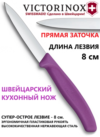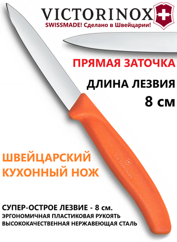 Нож для овощей и фруктов VICTORINOX Swiss Classic будет незаменимым помощником на Вашей кухне. Его острое 8-сантиметровое лезвие с заостренным кончиком поможет без труда и быстро очистить и нарезать любой фрукт или овощ. Вы можете легко удалить семена перца, быстро очистить яблоко от сердцевины, нарезать кучу овощей на палочки или на маленькие квадратики – какую бы работу вы ни выполняли, с этим ножом вы приготовите блюда, которые будут столь же красивы, сколь и вкусны.