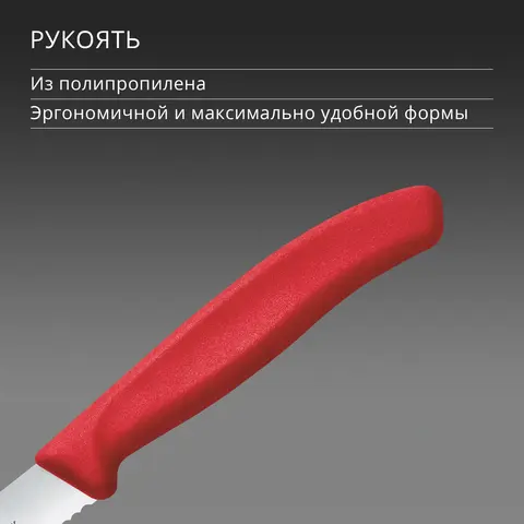 Лезвие ножа Victorinox изготовлено из высококачественной нержавеющей стали, подходит для широкого спектра точных кулинарных задач и обеспечивает идеальную нарезку. Лёгкая эргономичная рукоять изготовлена из ударопрочного нескользящего пластика, обеспечивает максимальный комфорт и контроль. Уникальная заводская серрейторная заточка сохраняет остроту долгие годы.