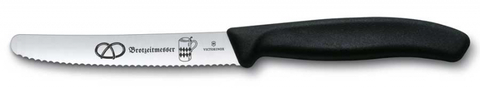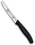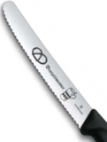 Универсальный швейцарский кухонный нож Victorinox с 11-сантиметровым зубчатым лезвием идеально подходит для нарезки овощей, фруктов, сосисок, колбас, стейков, небольших кусков мяса и кондитерских изделий. Благодаря эргономичной ручке и идеальному размеру вы можете легко использовать этот нож для самых разных задач на кухне.