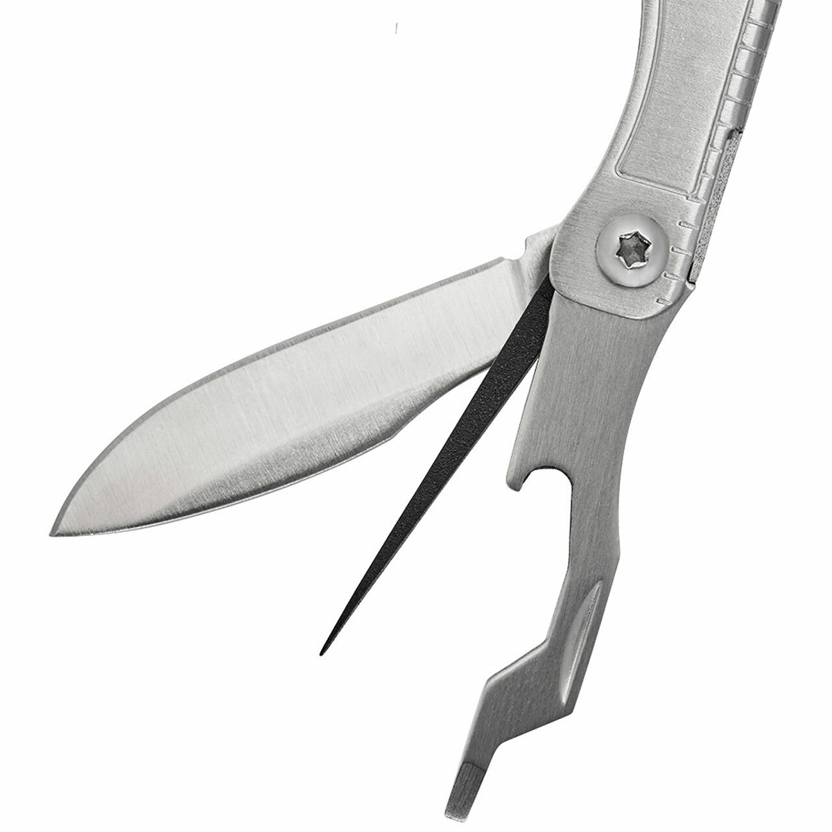Несмотря на свои небольшие размеры, карманный мультитул серии SOG Snippet предусматривает в своем наборе девять функций. Помимо основных ножниц со складными рычагами для более точного и уверенного реза, в конструкции повседневного мультитула имеется клинок, пилка для ногтей (напильник), зубочистка, пинцет, небольшая линейка, открывалка для бутылок, пара различных отверток, клипса и крепление для темляка, или кольца для ключей.