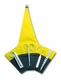 Ножницы, кусачки, пилка и пинцет. В подвесном чехле.