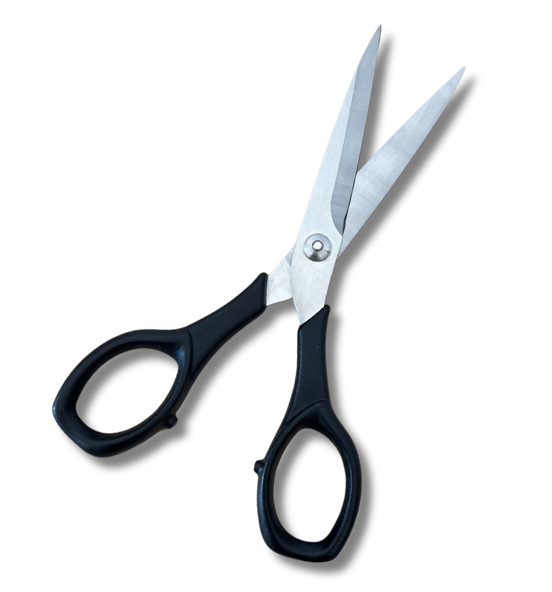 Общая длина - 16 см. Длина лезвия - 6 см. Универсальные бытовые ножницы.