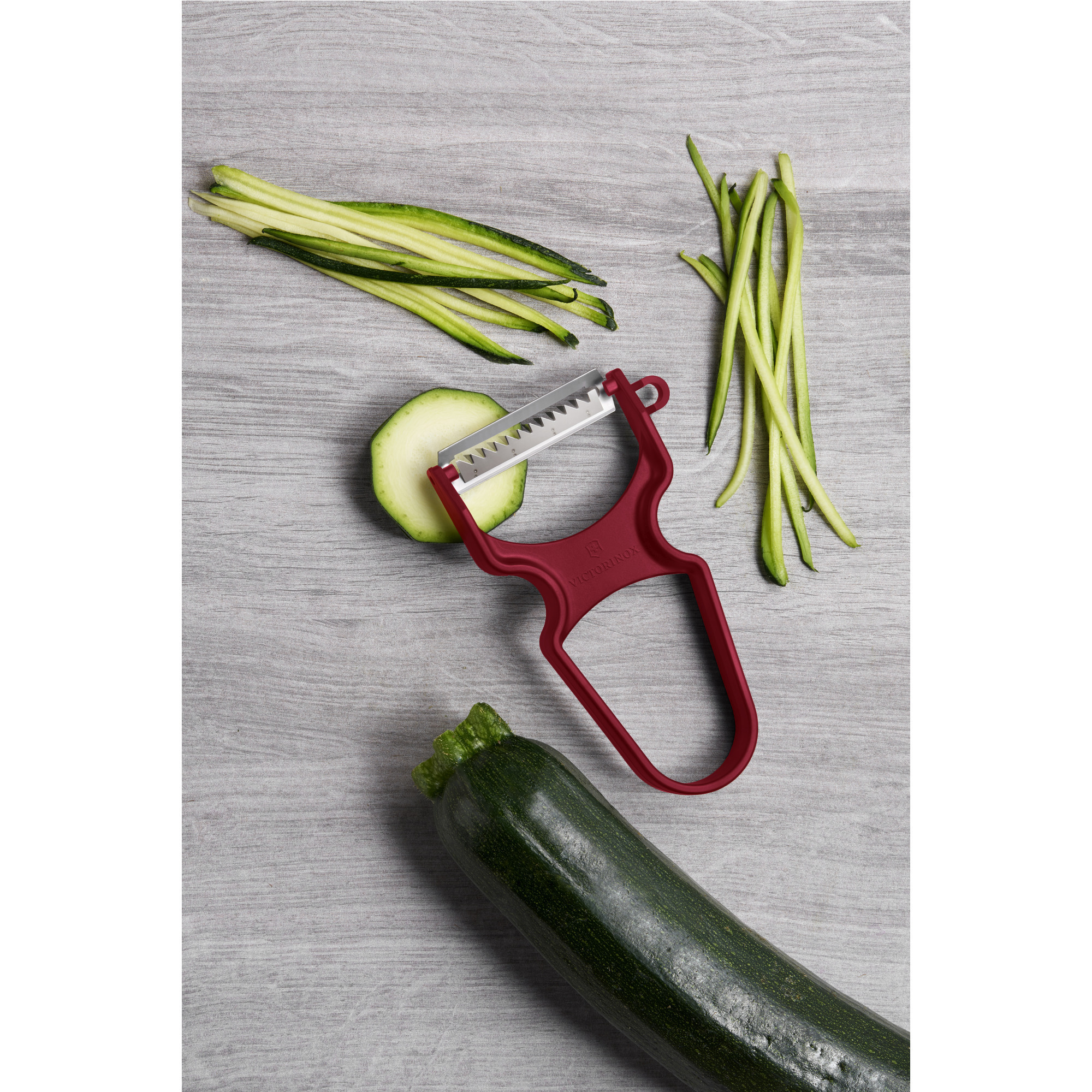 Нож для нарезки соломкой VICTORINOX RAPID с минималистичным дизайном теперь поставляется с прочной, пригодной для мытья в посудомоечной машине, ручкой из АБС-пластика и боковой насадкой для удаления картофельных глазков. Сверхострое лезвие режет аккуратно и быстро, а эргономичная форма обеспечивает оптимальную лёгкость и комфорт в работе. Модель доступна в красном, белом и чёрном цвете.