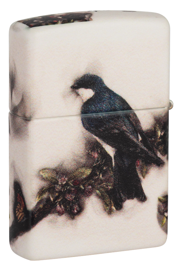 Выполненные в технике фьюмажа работы Стивена Спазука очаровывают зрителей по всему миру. Теперь его запоминающиеся работы, выполненные при помощи техпроцесса 540 Color, стали праздничной оберткой для зажигалки Matte, ознаменовав тем самый новый фронтир для творений Спазука, подобно неистовому пламени перекочевавших с его холста на металл. Птицы и бабочки монархи грациозно оседлали ветви деревьев, обернувших со всех сторон корпус этой зажигалки. Поставляется в подарочной коробке. Для оптимальной работы рекомендуется использовать только оригинальное топливо Zippo.