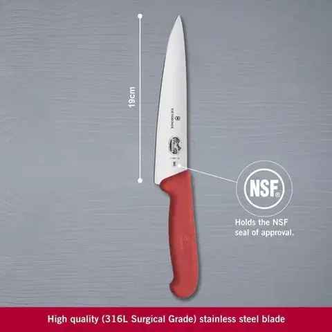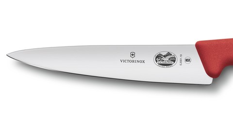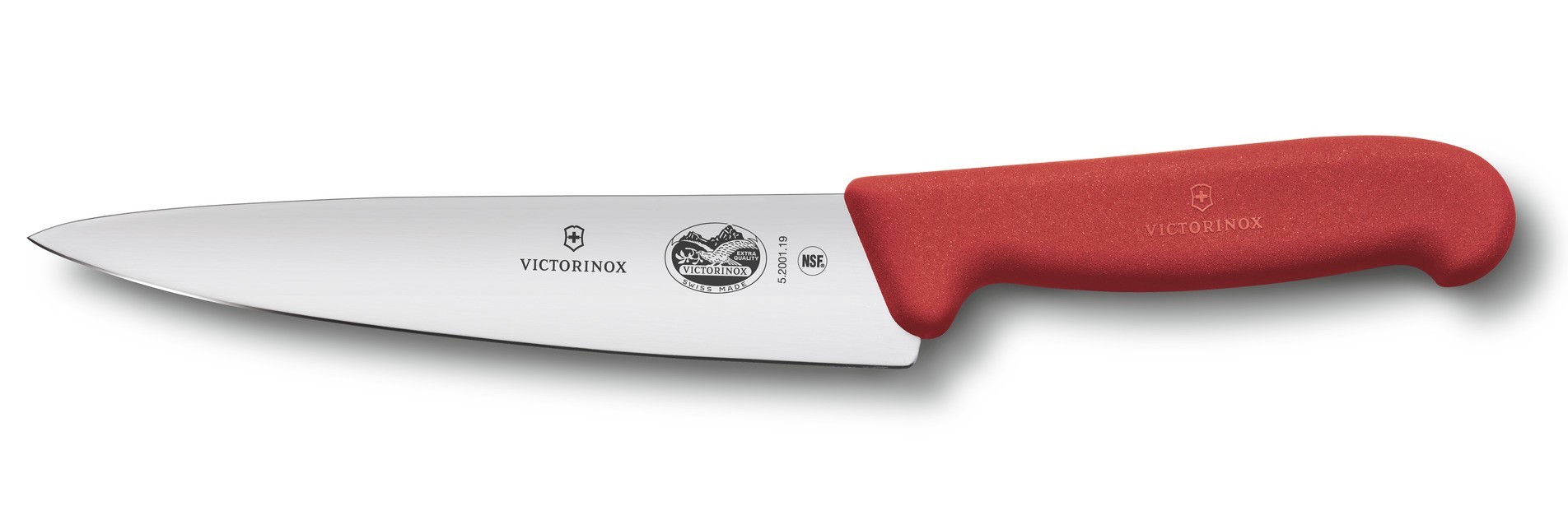 Victorinox 5.2001.19 - разделочный шеф-нож с эргономичной нескользящей рукоятью красного цвета.