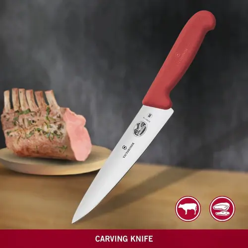 Поскольку домашние повара и мастера-шефы в равной степени рассчитывают на его помощь при создании простых блюд из единственного продукта, а также изысканных пиршеств с шестью переменами блюд, нам кажется, что нож Fibrox Carving Knife из профессиональной линейки ножей Victorinox станет одним из самых востребованных на вашей кухне. К тому же в скором времени вы обнаружите, с какой легкостью стали справляться с нарезанием и шинковкой мяса, овощей или фруктов в любых количествах благодаря его эргономичной нескользящей рукояти.