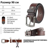 Натуральная воловья кожа. Размер ремня: 90 х 4 см. Общая длина ремня с пряжкой: 111 см.