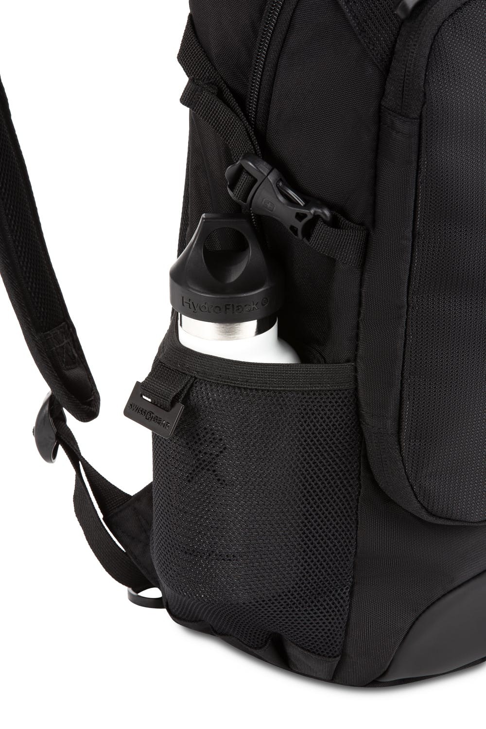 • Боковые карманы. Один из эластичной сетки для бутылки с водой или зонта, второй на молнии для мелких предметов