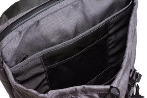 В одном основном отделении находится отсек из мягкой твидовой подкладки для ноутбука и телефона, а также расположены дополнительные карманы и крепление для письменных принадлежностей. Верхняя панель надежно закрывается на карабины. Прочная спинка и укрепленные, регулируемые шлейки равномерно распределяют вес на позвоночник, что позволяет долгое время носить рюкзак без вреда для здоровья.