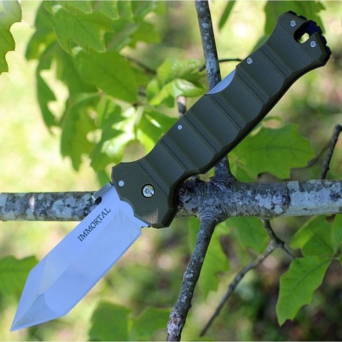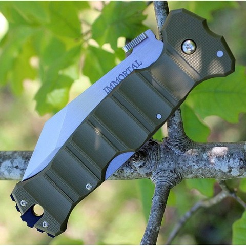 Ножевой дизайнер Mike Wallece вдохновлённый формами меча Гладиуса создал образ Immortal, а компания Cold Steel воплотила мысль в готовый продукт. Таким образом в 2017 году публике был представлен нож Cold Steel Immortal Coyote Tan. Исторически меч Гладиус был предназначен для сильного колющего удара, именно в этом действии раскрывалась вся суть его характерных форм, он пользовался популярностью у тяжёлой римской пехоты и был предназначен для ведения боя вплотную. Cold Steel мастерски удаётся переосмысливать и осовременивать известное оружие различных эпох – нож Immortal Coyote Tan бесспорное тому подтверждение. Нельзя назвать этот нож огромным, есть в линейке производителя ножи и покрупнее, но чувство стабильности и надёжности прямо-таки наполняет вас, когда этот компактный меч лежит в руке. Нарочито грубые рубленные формы, качественные материалы и продуманность каждой детали создают образ профессионального воина без прикрас и компромиссов. Нож Cold Steel Immortal Coyote Tan свежий, интересный и с характером, на его приобретение нужно решиться и тот, кто сделает это никогда не будет разочарован.